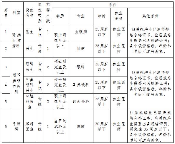 备注:1、2013年之前毕业的医学和护理类应聘者不要求规培证书。