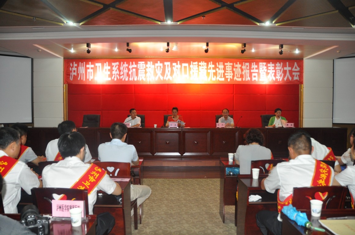 9月2日下午,泸州市卫生系统抗震救灾暨对口援藏先进事迹报告暨表彰大会在我院门诊大楼十一楼学术厅举行。泸州市直机关工委副书记伍洪,泸州市卫生局党组书记、局长任英,党组成员、副局长李道西,局党组成员、机关党委书记唐雯,党组成员、副局长王建伟等领导和泸州市各医院、卫生执法、防疫等单位领导、医务工作者代表共200多人参加会议。