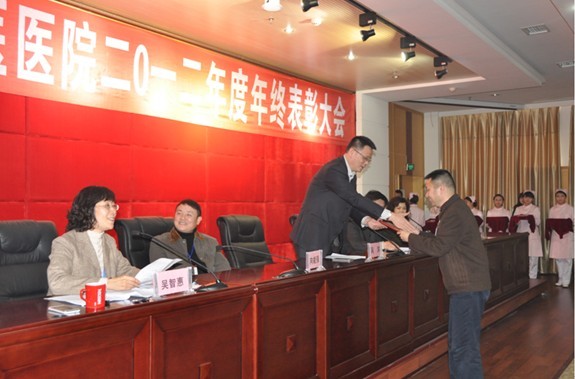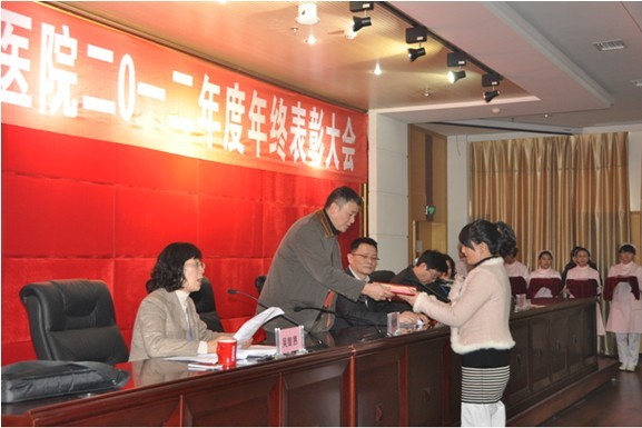 2月6日下午, “泸州市中医医院2012年度年终表彰大会” 在学术厅隆重召开,全院干部职工参加了会议。表彰大会由吴智惠副院长主持,表彰大会上,全体院领导为获奖先进集体、先进个人等获奖者颁奖,给大家拜年。会议在热烈的掌声中落下帷幕,在颁奖的同时也激励着全院职工在新的一年,为医院发展更上一层楼做出最大的贡献。
