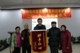 活动现场,市中医院收到了一面特殊的锦旗,说它特殊,是因为这是“老”病友郭道富与病友李正均及其双方家属一起送的。 两年前,76岁的郭大爷因患结肠癌来到了市中医院内五科治疗。两年来,通过市中医院的专业与爱心以及自己的积极配合和妻子的精心护理,郭大爷的病情得到了很好的控制,体重也由原来的104斤涨到了116斤。今年已经是郭大爷和妻子彭渝贞连续三届参加内五科组织的迎春茶话会活动了。每一届活动现场,郭大爷和爱人都主动向病友们分享自己的抗癌“四项基本原则”,目的就是要鼓励新老病友要相信科学,相信医生,积极治疗。和郭大爷同一单位的李正均正是在郭大爷的鼓励下,来到市中医院治疗并得到了好转。