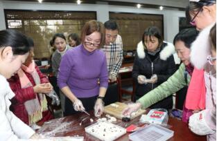 内五科医护人员与病友一起完成手工牛轧糖制作