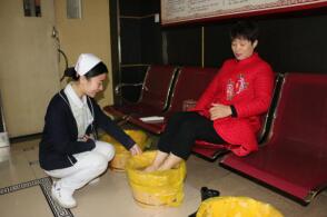 此时正值寒冬时节,正是呼吸道系统疾病和虚寒型疾病的高发期。但笔者看到,来这里参加活动的人们个个面色红润,大汗淋漓,仿佛此时的寒冬与他们无关。原来,他们是前来咨询了解的市民,在医护人员的帮助下正进行着“三九灸”疗法及足浴体验。 正在足浴的汪女士大方地说出了自己的感觉:“本来平时感觉自己气血不通畅,一到冬天就手脚冰凉。但是,你看我现在都在出汗了。我向护士一打听才知道秘密就在于这足浴里加入了具有舒筋活血、益气养颜功效的药包。”