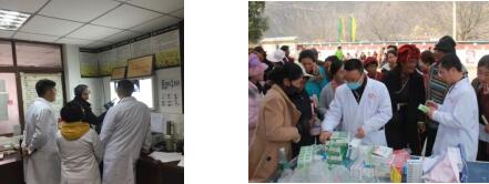 援建人员刘汉江师带徒培训中 援建人员谢键送药下乡中