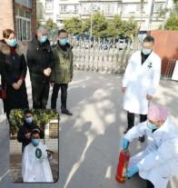 (2月15日,一把手术用的备皮刀,一瓶医用消毒凝胶,科室副主任黄远琼充当“造型设计师”,曾经的带教学生、科室医师石祖梅充当“理发师”,泸州市中医院第三批抗疫医疗队队员、内八科副主任医师张文强的“剪发行动”就这样完成了。)