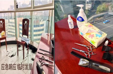 一把电推剪、一块围布、一包纸巾、一张桌子、两把椅子、两把剪刀、两把梳子,这是 “临时发屋”的全部家当。工具是五官科护士长张月波主动贡献出来的,地点设在医院会议室旁楼梯间。为了不影响工作,剪头只能在休息时间,实行预约制,并且一用一消毒。“现在是特殊时期,很多同事都被头发的事情困扰,所以我就想着来志愿为大家剪头发了。”张红军说,自己并没有专门学习过理发,仅有的剪发经验来源于读书时和同学间相互剪过以及在工作早年间,曾为本院职工及久病不能下床的患者免费剪过头发。不过,看到源源不断的“客流”,相信这位平时拿手术刀的外科医生剪出来的头发也应该是很不错的,大家一起来看看“托尼张”的技术怎么样吧?