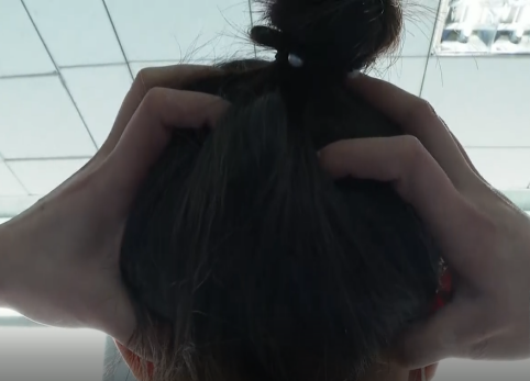 把五个手指头张开,把中指放在眉心的地方,食指和无名指放在眉毛的中央,小指和拇指放在太阳穴的位置,用力地往上推,一直推到你的头顶,反复10次。