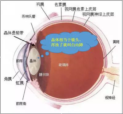 白内障是指晶状体的混浊。你眼睛里的晶状体随着年龄增长,原本透明的晶状体会缓慢变成黄色或者褐色,这会让你看东西时觉得偏向褐色或者深色。如果晶状体混浊、变色程度比较厉害,你还会无法分辨蓝色和紫色。
