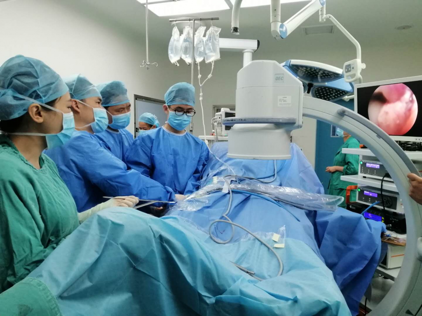 泸州市中医院骨三科主任、主任中医师李彬(左二)率手术团队为患者进行手术治疗中