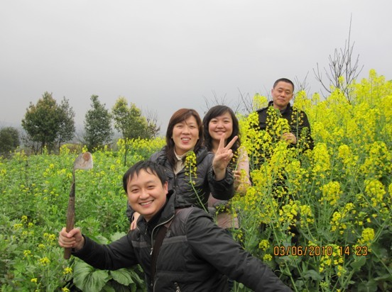 开年来我科一直持续“高热”,病人居高不下,大家工作压力很大,也很疲惫,正值妇女节来到,为庆祝妇女的节日,放松大家一直紧绷的神经,科室决定到杨桥春游。 现在正是油菜花开的季节,来到杨桥,在护士长的带领下,大家热情高涨,积极参加登山活动。一路上见到满山满地的油菜花气势壮观,与远山近水,村落人家相辉映,近看远观皆为美景———蓝天白云下,铺天盖地的油菜花在阳光下闪烁,花海一望无际,一直延伸至远方,最后融入湛蓝的天际,蔚为壮观,不由让人惊叹造物主的神奇。大家纷纷在油菜花地里面合影留念。乡村清新的空气,农家热情的招待,让大家流连忘返。大家在不知不觉中抛掉了工作的压力,全副身心的融入到了大自然的怀抱。相信大家经过这次春游的放松,一定能在以后保持更好的工作状态,再创新高。架锅生火,用自己的劳动换取了一顿丰盛的绿色美食。