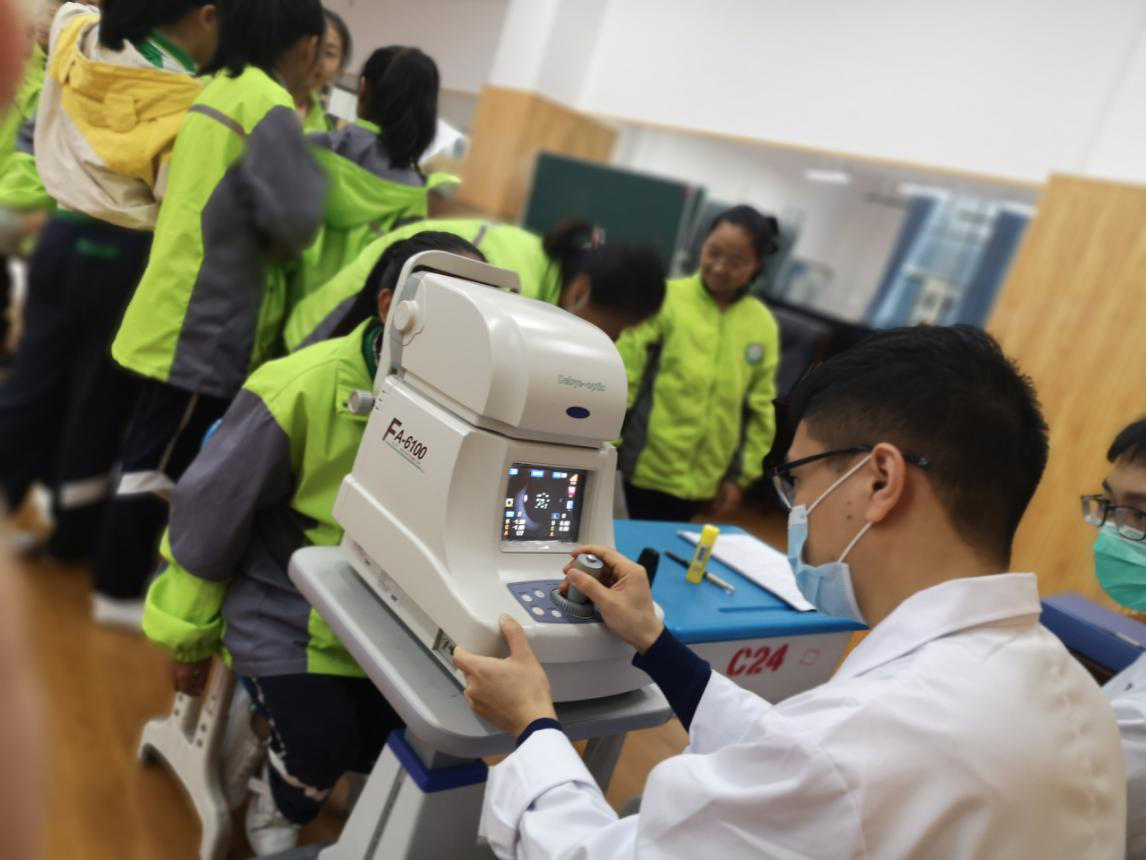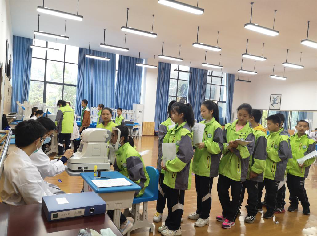 在活动现场,学生们有序地排队进行了视力筛查,检查项目包括:视力检查、电脑验光等。