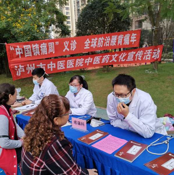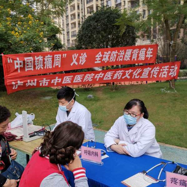 在“世界镇痛日-中国镇痛周”来临之际,为了让广大民众更多地了解疼痛,增强防病抗病意识,泸州市中医院疼痛科联合呼吸内科、针灸康复科、肿瘤科于2020年10月23日在江阳区“凤凰首府”开展了一次镇痛周义诊活动。