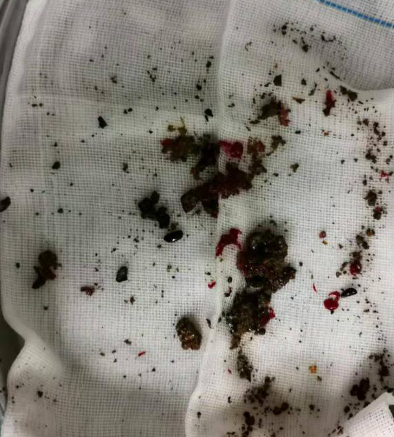 手术中观察到患者体内的结石
