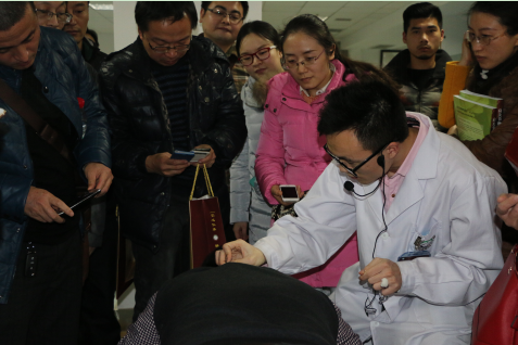 针灸康复科中医师王玥秋(硕士研究生)演示“飞针”手法治疗颈椎病