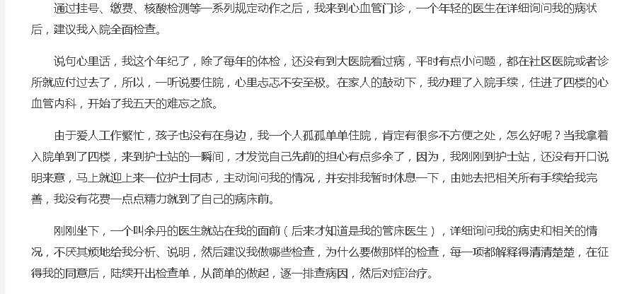 7月29日,一篇泸州患者实名曝光在泸州市中医院心内科住院就医体验感的文章登上了川南某媒体头条,一时间,这篇题为《泸州患者实名表扬“仁心科室”!——泸州市中医医院心血管内科住院点滴》的文章在朋友圈疯传,到底是怎么回事?7月30日,恰逢该患者回医院拿药,我们联系到了他,并了解到了他当时的心路历程......