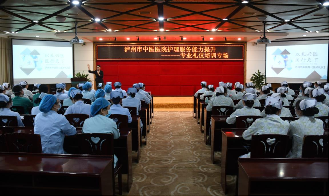 为了强化护理人员的职业礼仪修养,塑造白衣天使良好的职业形象,使护理人员以更加饱满的精神面貌、端庄大方的仪容仪表、积极向上的工作状态投入到临床一线,2021年10月13日下午,泸州市中医医院在门诊11楼学术厅开展“护士服务礼仪培训”活动。护理部部长袁红、各病区护士长和护士代表共计80余人参加了本次培训会。