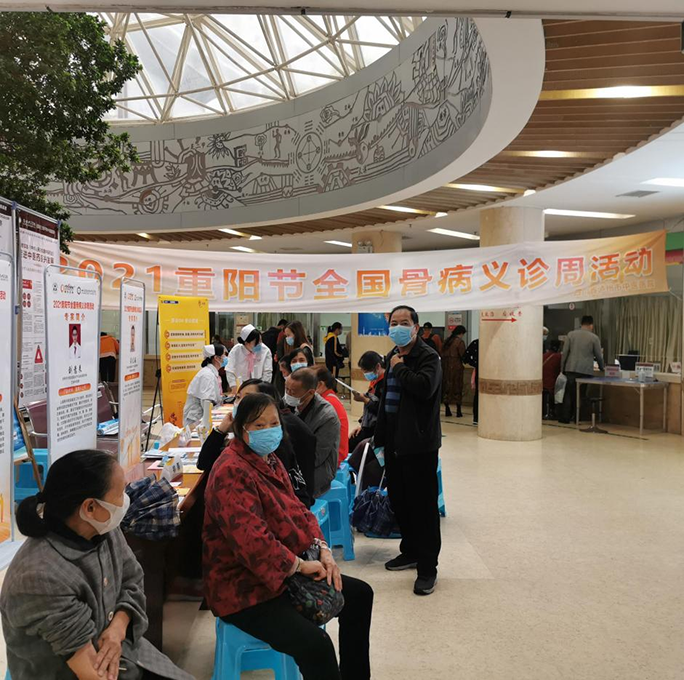 10月12日上午,骨科专家在医院门诊大厅举行“2021重阳节全国骨病义诊活动”。此次义诊主要以突出关节爱护为主题,关节炎是我国居民最为常见的慢性关节疾病之一,也是世界第三大致残性疾病。每年的10月12日也是世界关节炎日,目前全世界有超3亿关节炎患者,设立“世界关节炎日”的目的就是要提醒人们,对关节炎要“早发现、早诊断、早治疗”。