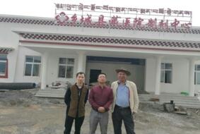 谢键(中)与乡城藏医院阿麦院长(右)检查制剂大楼修建情况