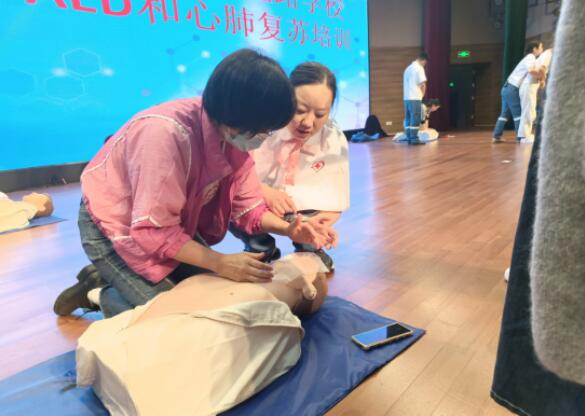 弘扬南丁格尔服务精神,宣传急救科普知识进校园,5月25日,泸州市中医医院医护团队和泸州市紧急救援120指挥中心一起走进泸州市梓橦路学校,开展了AED自动体外除颤仪和心肺复苏培训活动。
