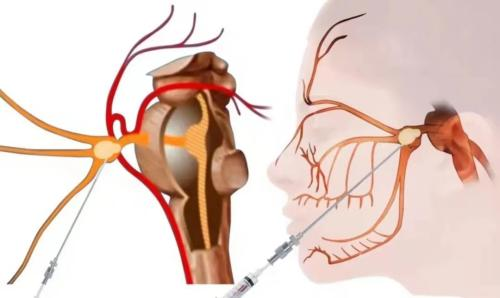 经过面部口角处将射频针穿刺到三叉神经半月节内,通过射频针发热,选择性毁损单支感觉神经,保留运动神经,达到止痛目的,术后面部稍麻木。