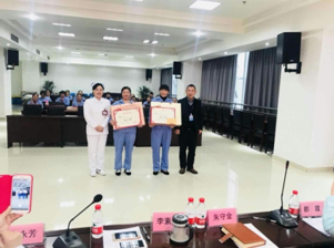 颁奖现场:我院护工杨福连(左二)、袁成芬(左三)荣获一等奖