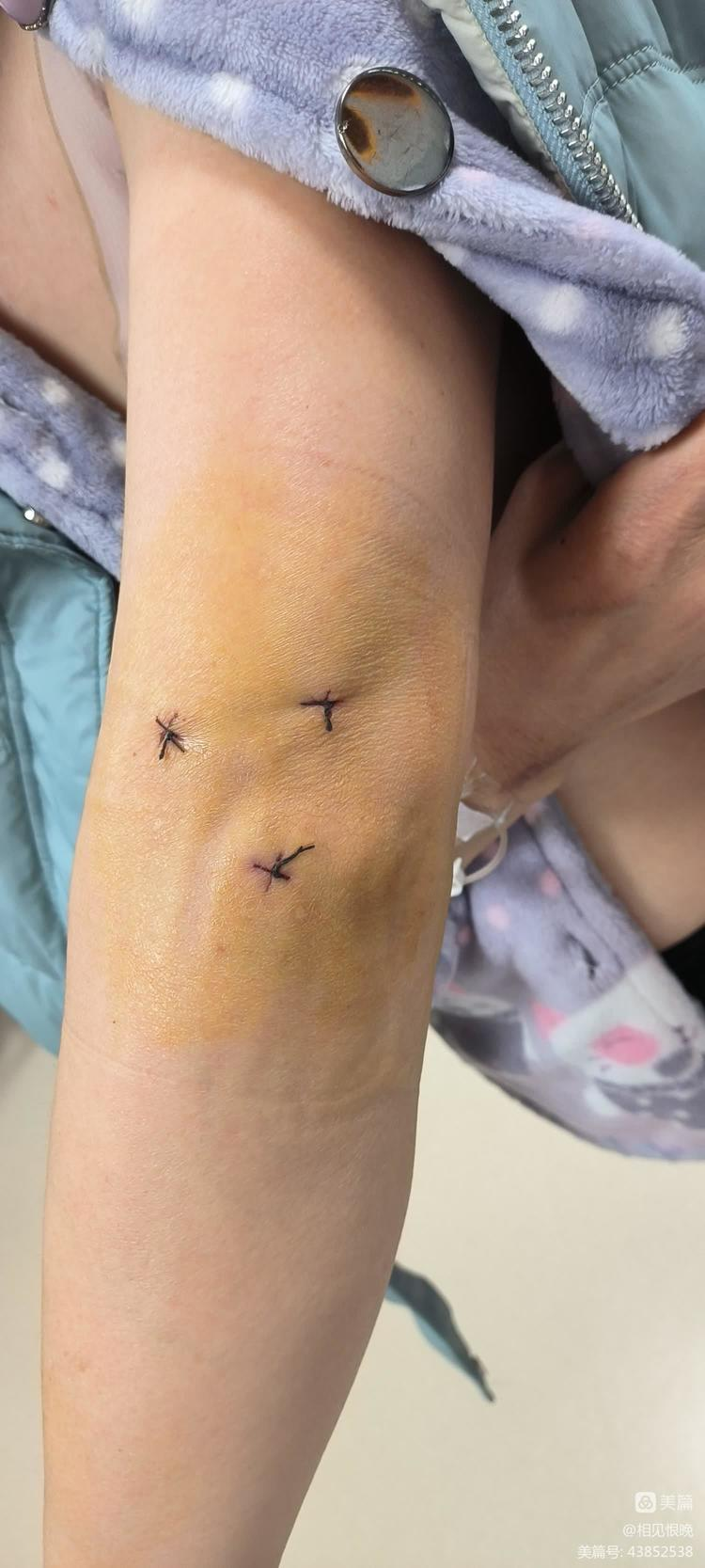 整个手术只有三个小洞洞,一个观察入路监视关节内的情况,两个操作入路清理滑膜,术后患者疼痛性质较术前对比完全改变。患者脸上露出了久违的笑容。