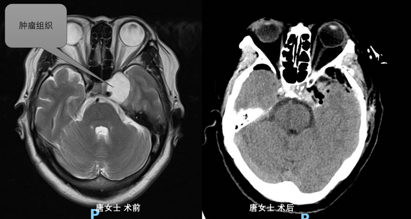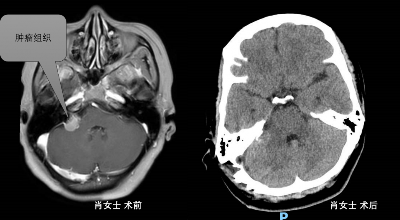 江阳区肖女士,因反复头疼长达5年入院,头颅MRI提示右侧桥小脑角占位性病变。术后病检提示神经鞘瘤,术后2周,患者好转出院。
