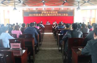 2018年3月21日下午,泸州市中医医院在门诊11楼学术厅召开“2017年度表扬大会暨2018年开年工作会”,医院院领导、全体中干、党员、副高职称以上人员及优秀个人获奖者出席会议,会议由医院副院长吴智惠主持。