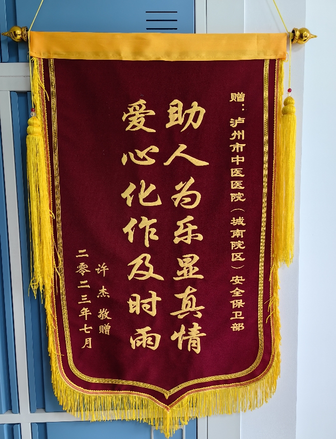 7月23日,保安人员救助一突发疾病来院患者,获得患者赠送锦旗1面