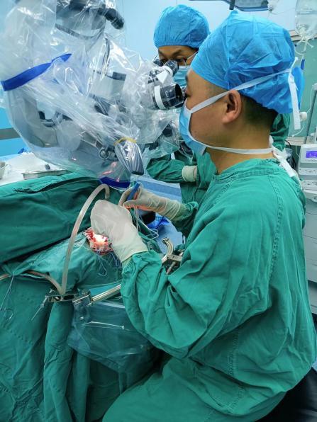 根据术前的规划,谢勇主任通过使用神经外科显微镜成功暴露出了小脑肿瘤组织,并与华西教授共同切除了紧贴着脑干和包绕颅底颅神经的肿瘤组织。术后患者无神经功能障碍,顺利出院。
