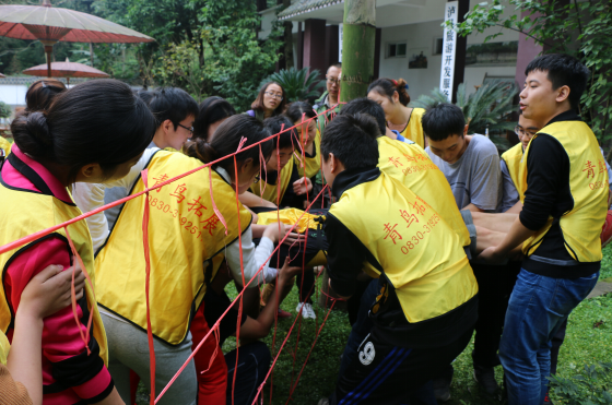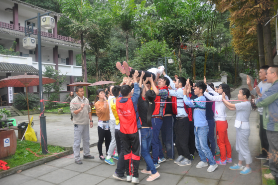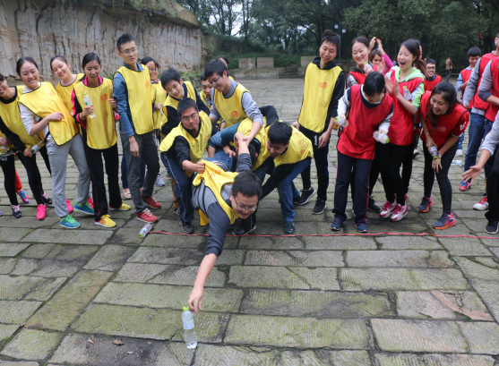 参加人员被分为红队和黄队两支团队,通过集体讨论,确定了各自的队名、队长和口号。活动中,大家相互鼓励、相互帮助、团结一心、共同完成了破冰、群龙取水、穿越电网、信任背摔、 挑战越障等一系列拓展项目,体现了浓厚的集体归属感和团队意识。每轮项目结束后,大家都会在一起相互商讨、争相发言,分享亲身体验的过程和成功的喜悦,尤其是学会了如何去沟通,如何去克服心理障碍,如何突破自我去释放正能量战胜困难。