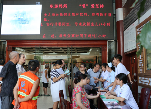 8月1日-7日是第24个“世界母乳喂养周”。今年世界母乳喂养周的主题是“职场妈妈,‘喂’爱坚持”。今日,我院在医院门诊大厅处开展了母乳喂养周宣传活动。