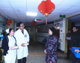 慰问中,院领导嘱咐大家要保重身体,要认真坚守岗位,以高度的责任感,精湛的医术,为患者提供优质的诊疗服务。院领导亲切的慰问使大家深受感动和鼓舞,纷纷表示感谢院领导的关心,一定不辜负领导的期望,坚守岗位,尽职尽责,确保春节期间各项工作的顺利开展。