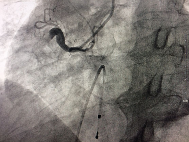 入院时,病人出现了血压下降,心率减慢只有46次/分(一般正常人的心率为60—100次/分),并反复呕吐,病情非常危重。接诊张大爷的国家卫计委心血管疾病介入诊治资质医师袁小蓉立即对张大爷进行了查体和心电图检查,明确诊断为急性下壁、后壁ST段抬高型心肌梗塞,估计“罪犯血管”在右冠状动脉,血管堵塞之后,导致了三度房室传导阻滞(这是最严重的房室传导阻滞)和心源性休克,死亡风险极大。袁小蓉迅速将诊断结果和可能引发的后果告知了患者家属,并告知其现在最好的抢救办法就是马上做急诊冠状动脉介入治疗,否则随时会有生命危险,但手术存在一定的风险性。张大爷的子女虽然担心,但却表现得很镇静、果断,没有一丝犹豫,马上签字同意做手术。