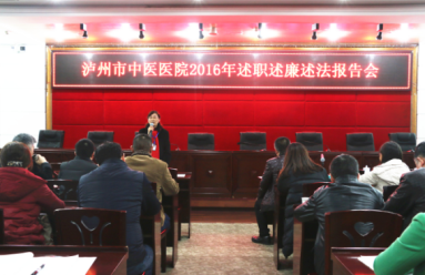 2016年12月14日-16日,我院在门诊11楼学术厅召开2016年科室述职述廉述法报告会,医院领导班子成员、全体中层干部、高级职称人员参加,业务副院长吴智惠主持会议。