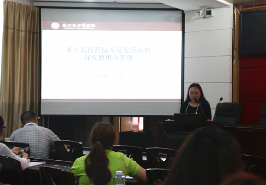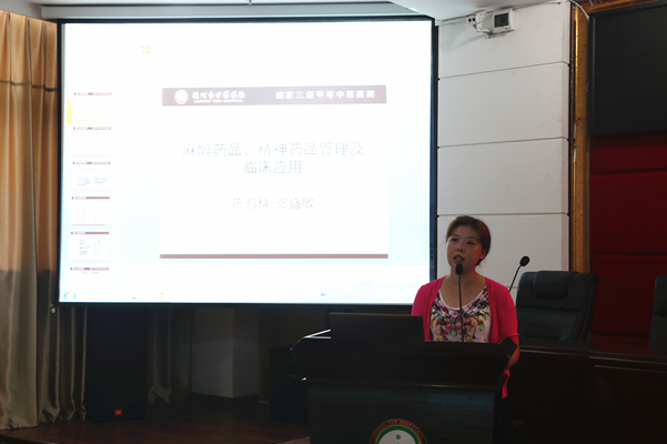 我院药剂科主任张世波、副主任张盛敏、主管药师李倩,药师邵单炫、中药师陶雪梅分别作了题为《新药申报的流程》、《麻醉药品、精神药品管理及临床应用》、《重点监控药品及高危药品的规范使用与管理》、《抗菌药物的合理使用》、《中药注射剂的合理应用》的讲座。各位老师围绕不同药物在临床中合理应用的原则、方法及技巧进行讲解,内容丰富专业、所举临床案例紧扣主题,语言通俗易懂,赢得现场阵阵掌声。