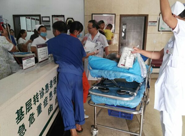 时间就是生命,救人刻不容缓!我院医护人员没有丝毫犹豫,带上四十几公斤的急救医疗器械,直接爬楼梯上去。医护人员经过10分钟的奋力登楼,到达李某家中,发现患者卧床不起,呼吸困难,立即进行急救处理。待患者病情基本稳定后,大家徒步用担架抬患者下楼,克服楼道狭窄的困难,最后顺利将患者送到我院急诊科救治。此时,医院人员的衣服全被汗水打湿,仍然微笑着安慰家属不要担心。