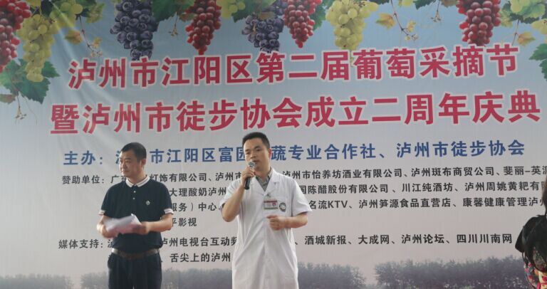 2016年7月3日上午,泸州市徒步协会周年庆活动在黄舣镇罗湾村富泓源葡萄园举行,我院骨伤三科主任李彬、急诊科主任周龙飞等医护人员组成专家团队,为参会人员提供医疗保障服务。