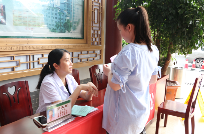活动现场,妇产科的专家就有关母乳喂养、产前产后护理等问题耐心地进行答疑解惑。护士认真地为市民免费测量血压。“生产后吃什么能保证身体跟上营养,为娃娃提供更多的母乳呢?” 一位年轻的孕妈妈咨询道。现场坐诊的妇产科副主任、副主任医师罗玉辉告诉她:“多喝点汤,及时补充富含蛋白质和高热量的食物,如猪蹄、排骨、鲫鱼等炖汤。同时,要注意摄入一定量的绿色蔬菜,做到均衡饮食,这样才能保证充足的母乳喂养。”