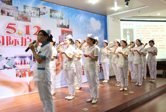 人间五月天,相聚情无限。5月12日,我院举行了以“团结、拼搏、和谐、快乐”为主题的护士节纪念活动。16 名新护士齐举右手,面对南丁格尔画像,庄严宣誓。活动中还进行了护理品管圈成果颁奖暨授帽传光典礼及丰富精彩的节目演出。