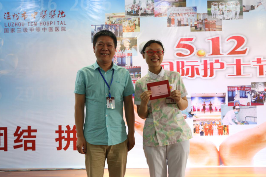 活动现场,我院党委书记、院长郑海三代表医院党委及领导班子,向奋斗在护理工作岗位上的白衣天使们致以节日的祝贺和崇高的敬意!向为医院建设做出贡献的护理界全体同志们致以亲切问候!他说:“5月12日,是全世界护士的节日。这一天,包括我在内的医院所有职工也将毫不吝惜对你们的赞美;今天,你们应该接受鲜花、祝福、赞美,你们也将获得荣誉、理解和尊重。医院因你们的微笑和汗水而焕发出人性的风采,因你们贴心的服务而更具诚信的光辉!如果说泸州市中医院是一座春色缤纷的大花园,你们就是这座园地中最娇艳的花朵!”同时,郑海三对护理部工作表示了肯定。郑海三表示,医院发展日新月异,护理管理更应该科学化、精细化,这对每个管理者来说是一个挑战。来院短短几个月,他感受到了医院这支护理团队的战斗力和凝聚力。特别是在“护理质量管理、中医护理特色优势的发挥、护士的分层级与规范化培训、优质护理服务”等方面,都展现出全院护理人严谨的学习态度、务实的工作作风、追求卓越的进取之心。通过边学习、边探索、边实践,积极推行护理品管圈活动,探索职业陪护的规范化管理,提高了管理效率、改善了护理服务质量。此外,医院护理部主任彭闺臣也代表护理部向全院护理工作者致以节日的祝贺和诚挚的问候并向一直以来关心和爱护护理工作者的各级院领导,临床、行政后勤的科主任表示了最诚挚的谢意!