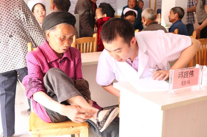 随后,我院的外科、骨科、内科、皮肤科专家在骑龙村开展了义诊,为当地群众送医送药。专家们认真地对待每一位群众,细致地询问病史,仔细地查体,给予合理化治疗或健康指导,并根据治疗方案发放药物,耐心地指导其服药方法及注意事项。当地一位老人竖着大拇指说:“我们平时到城里去看病不方便,市中医医院的专家来到家门口为我们看病,真是太好了!