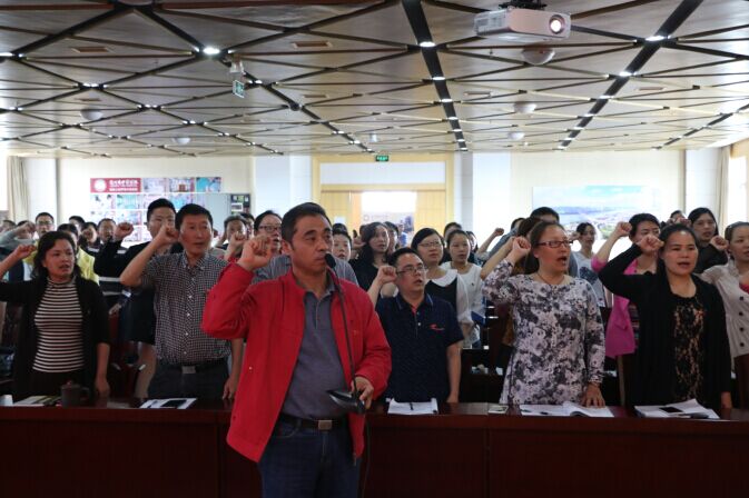 活动中,我院党委副书记王万芳发表讲话,要求全体党员对照入党志愿谈理想、谈信念,对照入党誓词找标准、找差距,进一步明确做合格党员的标准要求。随后,全体党员在老党员、我院党委委员邹锦平同志的带领下,面对鲜红的党旗,郑重地举起右拳,重温入党誓词,庄严地宣誓。