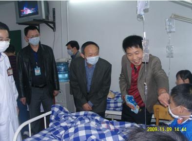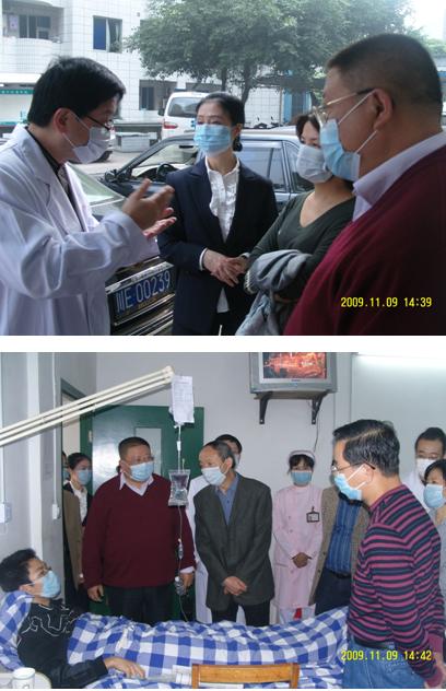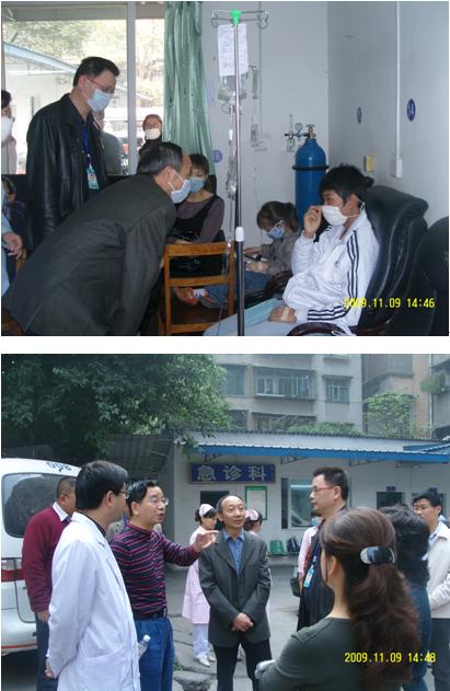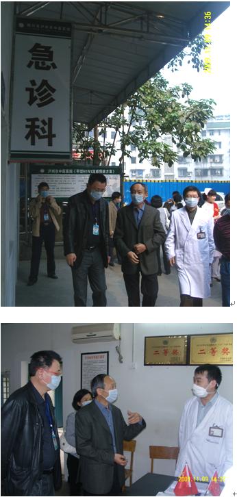 我院吴滨院长向魏副主任一行介绍了设在我院急诊科的发热门诊的医疗情况。自甲型流感疫情在我省出现后,医院便将甲流防治纳入医院重点工作,加强了发热门诊基础设施,重新修建了专门的发热门诊观察室;建立了发热病人接诊制度和流程,组织经验丰富的专业医务人员整理出我院防治甲流的中药治疗方案;强化了甲流防治的院内外宣传环境;加强了医务人员在甲型流感方面的知识学习,因此,在10月14日晚接诊十五中六名发热学生时,我院立即引起高度重视,次日确诊了四例甲型流感感染者,为泸州市阻止甲型流感疫情的蔓延把好了第一个重要的关口。