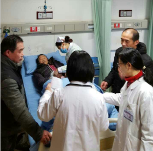 副院长巫骏川(左二)将汤圆放在卧床病友的床旁