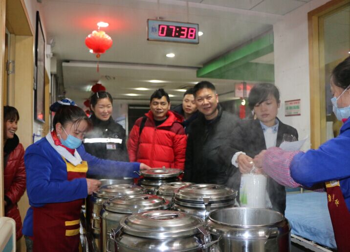 大“年”初一,天色微明,春寒料峭。院领导为春节期间坚守岗位的医护人员和住院的病友们送上热气腾腾的汤圆。医护人员和病友们吃着甜甜的汤圆,感受着浓浓的“年”味,心里满是甜蜜的幸福与温暖的感动。