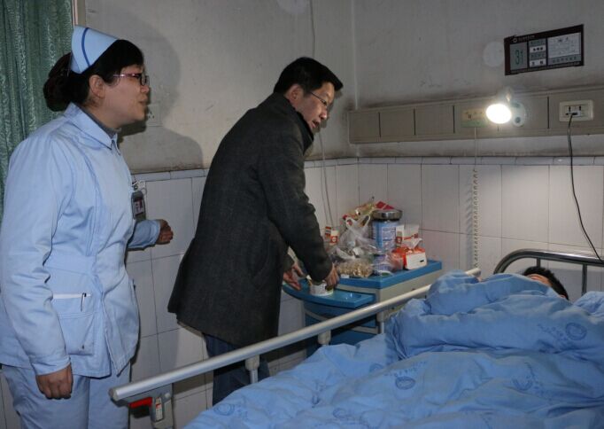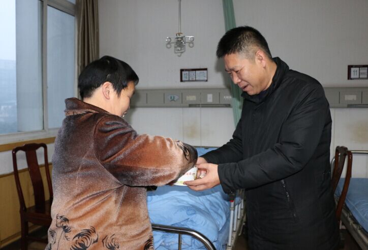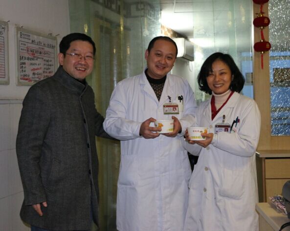 院党委书记、院长郑海三(右一)亲手为病友送上汤圆
