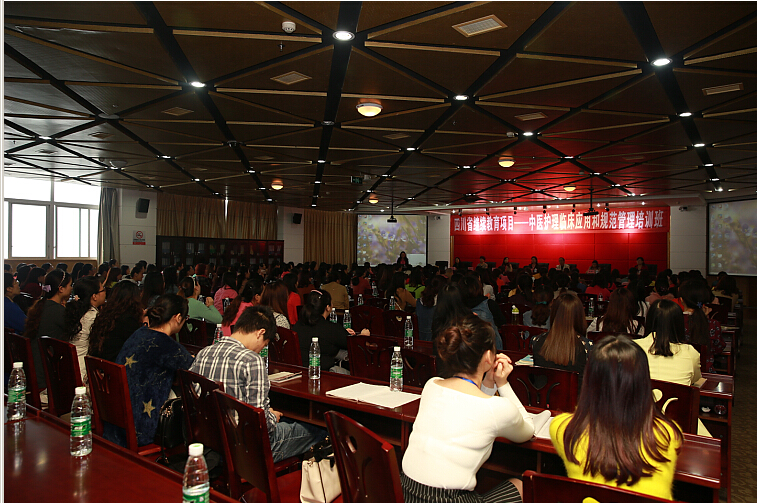 培训于上午9:00准时开课。首先,受邀的四川省中医药大学附属医院/护理学院副院长蒋运兰向大家讲解了《亚健康与中医养生》,让大家认识到中医养生的优势和特色,中医养生的具体措施以及如何运用中医养生来走出亚健康、远离亚健康,课题新颖、实用,对于拓展治未病诊疗思维以及患者健康教育具有非常重要的指导作用。四川大学华西第二医院护理部副主任彭文涛详细给大家分享了《护理质量管理工具与实践运用》,学员们更深刻的理解了根因分析法在护理质量持续改进中的重要性,尤其是QCC活动中如何运用柏拉图、因果图、关联图、雷达图、甘特图等质量管理工具,为今后中医护理质量管理领域不断取得成果奠定了基础。我院护理部副主任袁红为大家进行了《中医医院护士岗位培训的组织与管理体系构建》的课题分享,着重在护士在职教育、护士岗位管理和护理管理体系构建方面给护理管理者带来更深一层的启示和思考。外科科护士长汤朝秀给大家详细介绍了《中医医院护士临床护理思维培养》,也是立足临床,以培养护士临床创新型思维和解决病人问题的能力为核心,在提升护士专业能力方面与大家分享管理成果,交流工作心得。外科护士长冯雪梅在《医院的信息化建设在临床护理管理中的运用》的讲解中,让学员认识到了信息化建设在保证护理安全、提高护理质量、规范工作流程和提高工作效率方面的重要作用。培训现场座无虚席,秩序井然,学员学习热情高,受益匪浅,对各级医院提升护理管理水平具有积极推动作用。