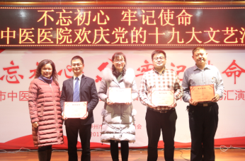 •  党的十九大胜利召开了,市中医医院人为之振奋,深受鼓舞!为深入学习宣传贯彻党的十九大精神,特别是习近平新时代中国特色社会主义思想,教育引导全院广大党员干部群众自觉把思想和行动统一到十九大精神上来,12月15日下午,我院党委在门诊11楼学术厅举办主题为“不忘初心,牢记使命­——欢庆党的十九大文艺汇演”...