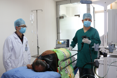 我院脾胃病科(消化内科)医生正在为患者做ESD(内镜粘膜下剥离术) 近日,我院脾胃病科(消化内科)成功完成一例直肠病变高难度ESD(内镜粘膜下剥离术)。 患者吴女士(化名),五年前在外省某医院做肠镜检查时发现直肠息肉,曾做外科手术治疗。术后第三年,吴女士在当地医院做肠镜复查时,发现直肠下段长了面积...