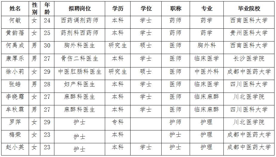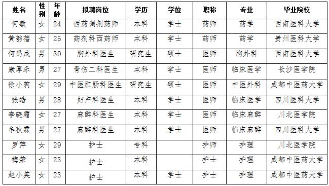附:泸州市中医医院拟聘用人员基本情况公示表